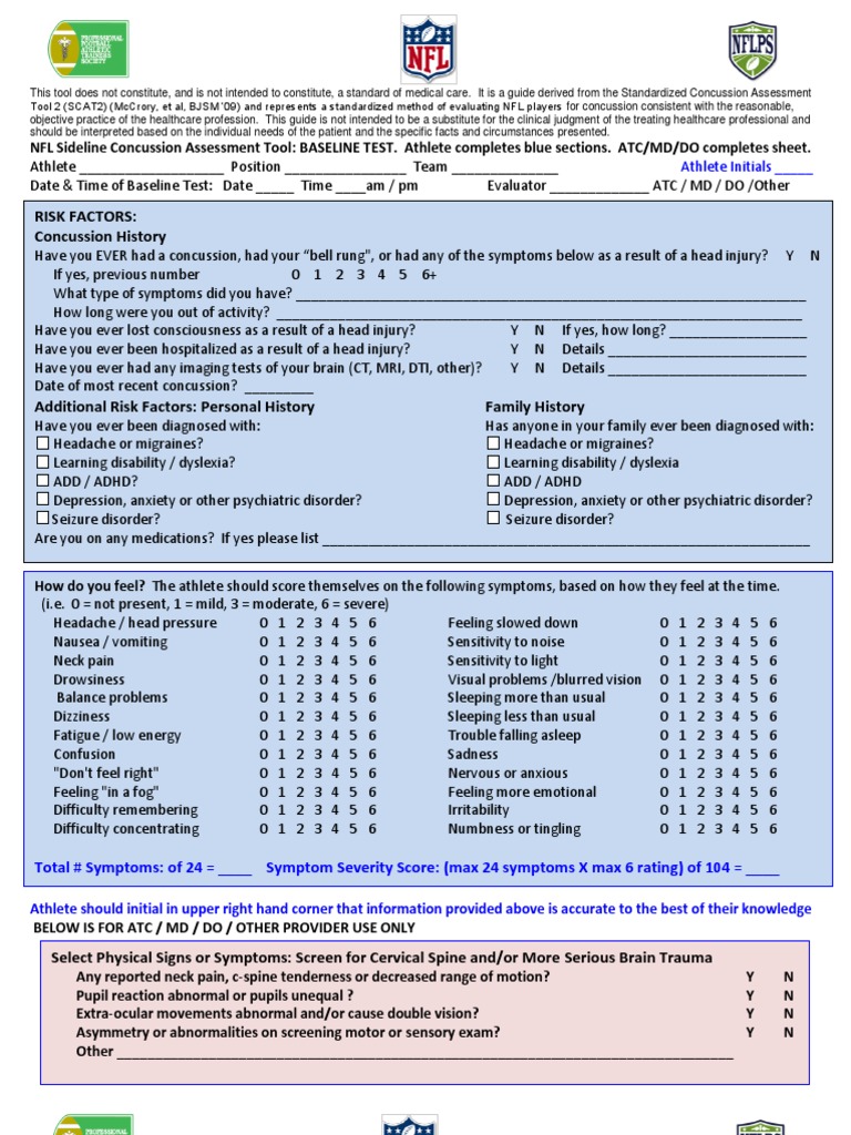 The nfl and nfl players association cleared the carolina panthers of wrongdoing in their handling of an injury suffered by quarterback cam newton during a playoff game earlier this mr. It begins with rest and recovery, where the athlete must avoid all activities except stretching. What to do with potential concussions in your organization. Players are taken to the blue medical evaluation tent for what's known as a sideline survey. the test is expected to include questions about the history of the event, which. I think there's a lot of things that can be improved, he.